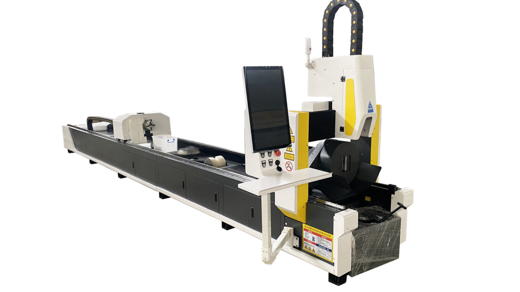 This is a high-precision laser cutting machine for round pipes, angle steels, and channel steels with a length of less than 7 meters and a diameter (side length) of 25-245mm. It can be equipped with an optional automatic loading system, which has high cutting efficiency and saves labor.